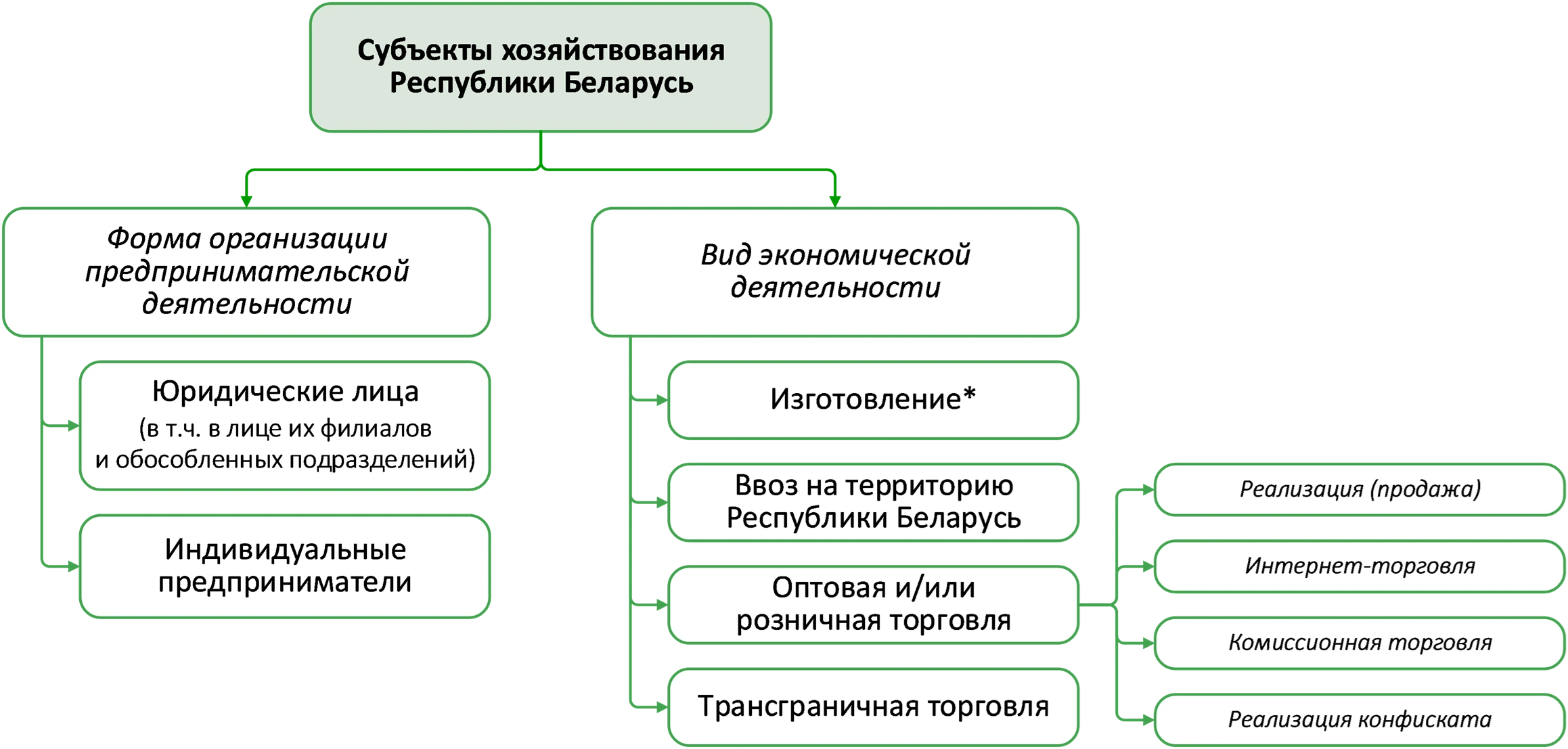 - регистрацию субъектов хозяйствования Республики Беларусь в системе маркировки;