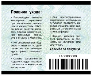 - нанести знак защиты, содержащий средство идентификации, на товарный ярлык (бирку, этикетку или иной носитель), прикрепленный к каждому ювелирному изделию;